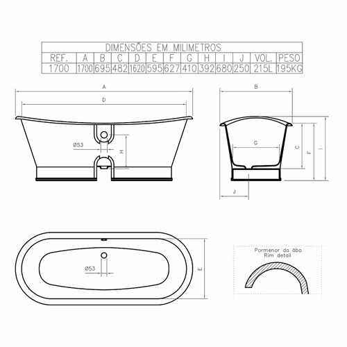 Med badkaret följer bräddavloppsbricka i krom (som täcker för bräddavloppshålet så att karet går att fylla upp till ovankant), bottenventil av push-typ i krom och kromade avloppsdetaljer. Andra varianter och ytbehandlingar på avloppsdetaljerna kan tilläggsbeställas.
