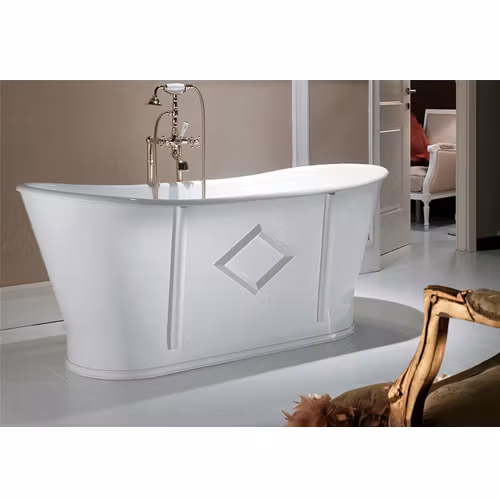 Chateau är ett fristående badkar i gjutjärn som kombinerar traditionell design med moderna anpassningsmöjligheter. Med sin generösa storlek på cirka 170 cm erbjuder det en perfekt balans mellan komfort och stil – idealiskt för dig som vill skapa ett exklusivt badrum. Tillverkat i massivt gjutjärn och med en invändig yta av äkta porslinsemalj, är Chateau byggt för att hålla. Den slitstarka emaljen är både hygienisk och lätt att rengöra, samtidigt som gjutjärnet effektivt bevarar värmen – vilket ger en längre och mer behaglig badupplevelse.