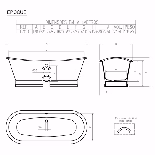 Epoque fristående badkar är ett exklusivt gjutjärnsbadkar med äkta porslinsemalj, elegant integrerat i en dekorativ ställning. Med en längd på cirka 170 cm kombinerar det klassisk design med modern funktion och blir en naturlig mittpunkt i badrummet.