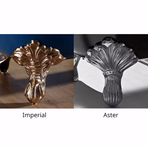Badkaret levereras med fötter eller på träsocklar. Som standard kommer det med imperial-fötter men kan även tilläggsbeställas med Aster-fötter. Fötterna finns i krom, vitemaljerade eller mässingspläterade. De kan även tilläggsbeställas i valfri RAL eller NCS färg (färgkoden måste i så fall framgå vid beställningen). Fötterna kommer med ställbara skruvar så att de kan justeras ca 10 mm. Träsocklarna går att beställa i färgerna lackerad ek eller mörk bok.