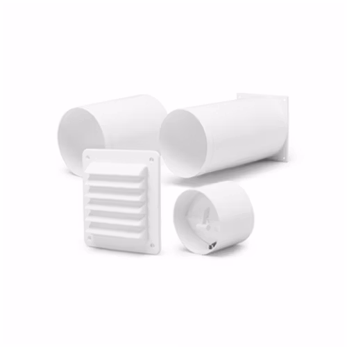 Komplett genomföringspaket för yttervägg, innehåller kallrasskydd, ytterväggsgaller samt modulrör. För anslutning till fläktar med stos Ø98-100 mm.