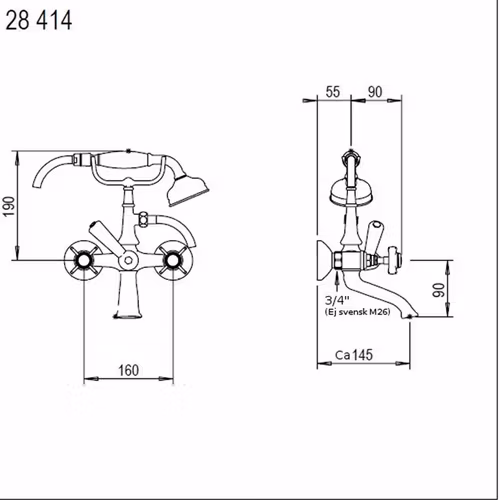 Coventry 28.414 är en tidlös badkarsblandare som kombinerar traditionellt formspråk med modern teknik. Den är framtagen för klassiska badrumsmiljöer där både estetik och funktion är viktiga. De vita inslagen är tillverkade i äkta porslin, vilket förstärker den traditionella känslan och ger ett exklusivt uttryck som passar i såväl sekelskiftesbadrum som nybyggda hem med klassisk inredning. Blandaren levereras komplett med handdusch och flexibel slang och är utrustad med moderna keramiska ventiler som ger en mjuk och exakt reglering av vattenflöde och temperatur.