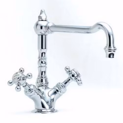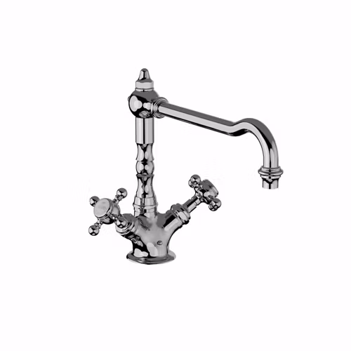 Denna köksblandare är utrustad med keramiska ventiler, vilket ger en mjuk, exakt reglering av vattenflödet och en lång livslängd utan dropp. De vita handtagen i äkta porslin förstärker den genuina känslan och ger ett exklusivt uttryck.