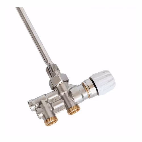 Alterna reglerventil för handdukstorkar. Anslutning M22 x 1,5 mot rörsystemet. 40 c/c. Insticksnippelns anslutning mot handdukstorken är G15. Ventilen levereras som 2-rörsventil men kan även ställas om till 1-rörsventil. Ventilens retur stängs av med en spindel under locket och tilloppet stängs av med termostat eller medföljande handratt. Ska inte kopplas till VVC-system.