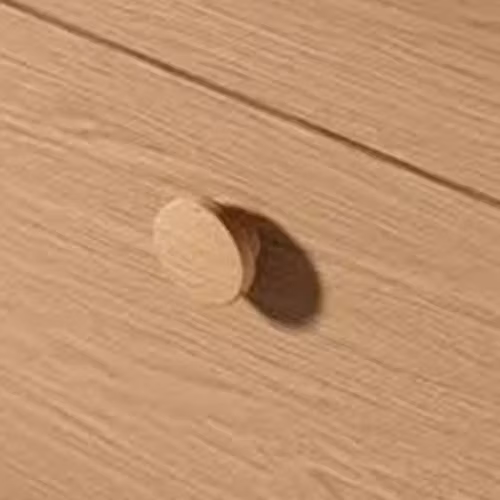 INR Knopp Dot Ø 50 mm är en rund knopp i massiv ek, avsedd för badrumsmöbler.