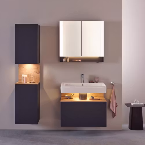 Med en modern design som skapats i samarbete med Studio F. A. Porsche, erbjuder Qatego högskåp en elegant och praktisk lösning för badrumsförvaring. Denna väggmonterade möbel är inte bara en stilfull inredningsdetalj utan också en funktionell förvaringslösning.