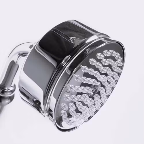 Duschset Maxima kombinerar stilren design med praktiska justeringsmöjligheter för att passa de flesta badrum. Den 20 cm stora takduschen är vinklingsbar och utrustad med silikondysor med antikalkfunktion, vilket gör rengöringen enkel och bibehåller ett jämnt vattenflöde över tid.