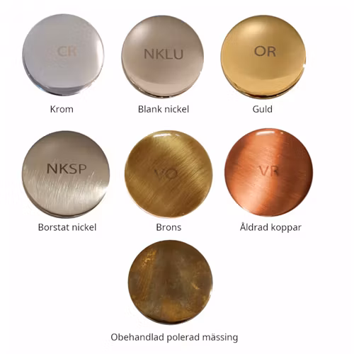 - Obehandlad polerad mässing (patinerar naturligt och kan putsas upp)