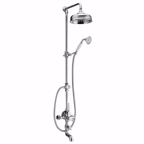 Victorian 592 är ett komplett badkars- och duschset som kombinerar klassisk design med moderna funktioner. Setet är utrustat med en termostatblandare och en generös taksil på 20 cm som ger en behaglig duschupplevelse. För ökad flexibilitet ingår även en handdusch med hållare som monteras på det uppåtgående röret. Victorian 592 är ett utmärkt val för dig som vill ha en klassisk badrumslösning med både badkarspåfyllning och dusch i ett och samma set.