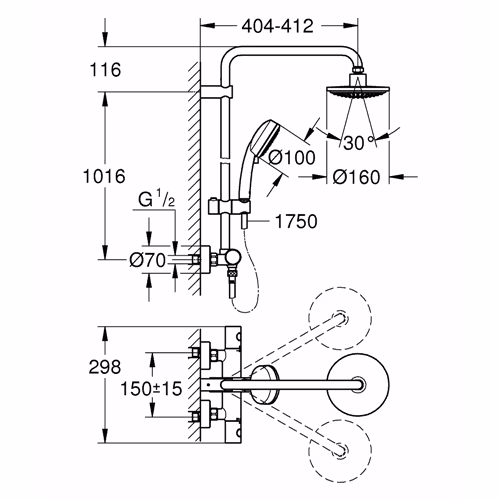 - Valfri uppgradering: GROHE EasyReach-hylla (26 362)