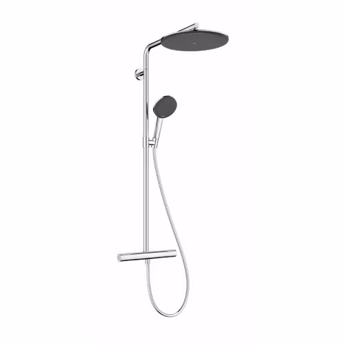 Förvandla varje dusch till en lyxupplevelse med Hansgrohe Raindance Alive S Puro Showerpipe 300 1jet med Ecostat Element 160 cc – ett exklusivt duschsystem för det moderna premiumbadrummet.