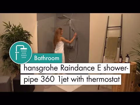 Hansgrohe Raindance E Showerpipe 360 1jet med termostat är ett exklusivt duschsystem som kombinerar modern design med hög komfort. Den stora huvudduschen på 360 × 190 mm ger en mjuk RainAir-stråle som blandar luft i vattnet för en fyllig och behaglig duschupplevelse. Systemet inkluderar även handdusch med flera stråltyper, duschstång, duschslang samt en termostat som håller en jämn och säker temperatur under hela duschen.