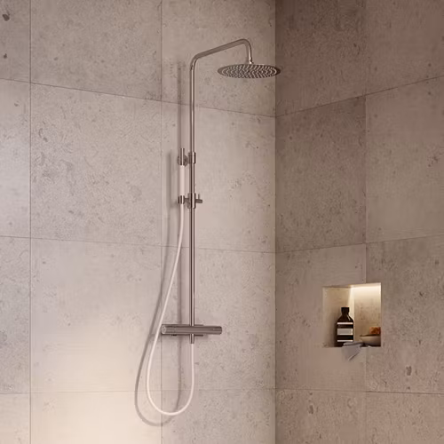 MIST är en i höjdled justerbar takdusch med rund taksil och flera varianter på färg på slang och handdusch. I den smäckra termostatblandaren ryms flera innovativa tekniker, såsom Safe Temp med unik vattentrycks- och temperaturkontroll vilket gör din duschupplevelse extra njutbar samt Eco Flow och Easy Clean som håller både vattenkostnaden och städtiden nere.