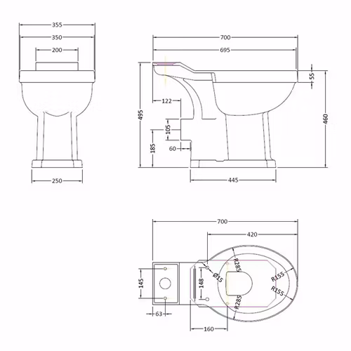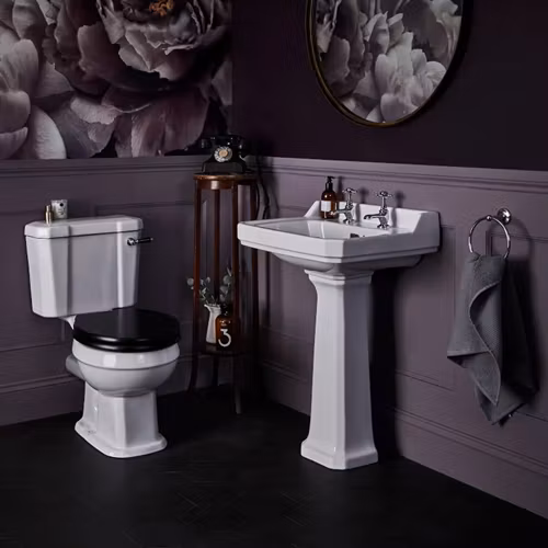 Fitzroy gammaldags toalett med spolvred, hel- och halvspolning. Toaletten har designdrag från den Edvardianska eran och kommer med mjukstängande sits som finns i flera olika färger. Det finns två olika sitthöjder att välja på, standard eller förhöjd.