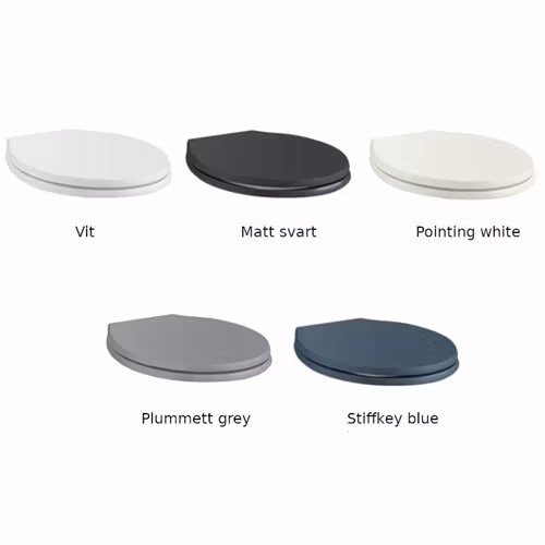 Sitsen finns i färgerna vit, matt svart, pointing white (lite bruten vit), plummett grey och stiffkey blue. Detaljerna på sitsen är kromade.