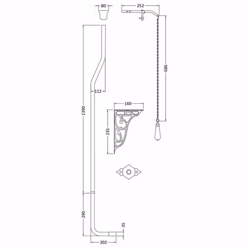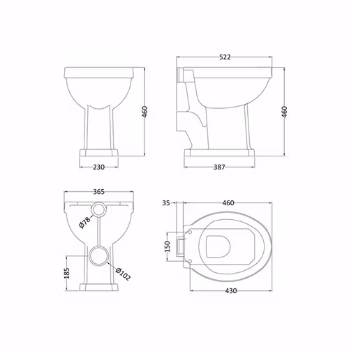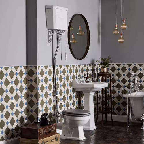 Fitzroy gammaldags högspolande toalett med spolhandtag i kedja. Toaletten har designdrag från den Edvardianska eran och kommer med mjukstängande sits som finns i flera olika färger. Det finns två olika sitthöjder att välja på, standard eller förhöjd.