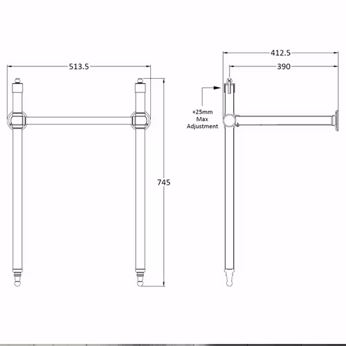 Metallställningen kräver att de båda rören in mot vägg anpassas i längd för att passa de olika tvättställen. Detta kan göras med bågfil eller kapmaskin.