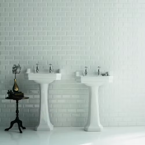 Burlington handfat Edwardian 61 cm med handduksstång och piedestal. Traditionellt och vackert handfat i klassisk brittisk stil. Ett handfat med handduksstång passar utmärkt när utrymmet behöver styra, och i de riktigt rymliga badrummen gör det sig extra fint med dubbelt handfat. Med ett handfat från Burlington lyfter du ditt badrum till nästa nivå av harmoni och prakt.