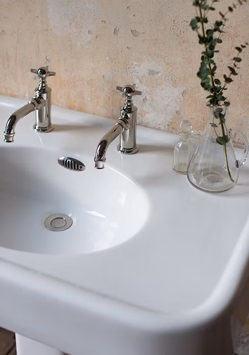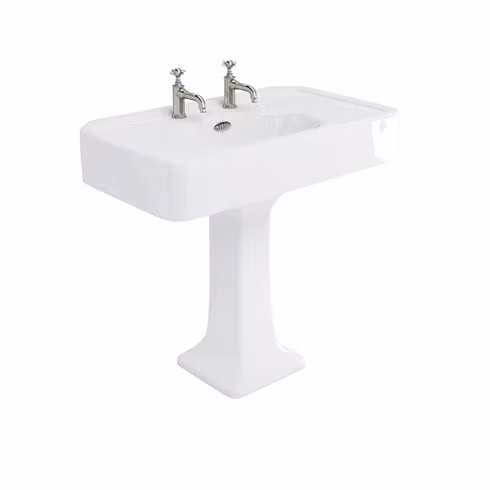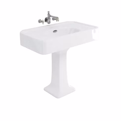 Tvättställ Burlington 900 mm handfat med Piedestal. Med bräddavlopp, 1 eller 2 blandarhål.
