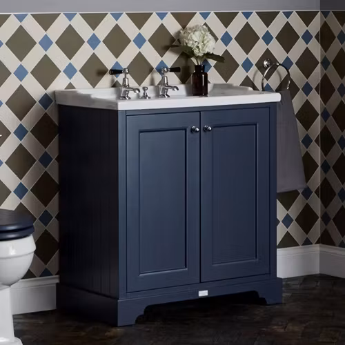 Stilren badrumskommod från Bayswater, ca 82 cm bred, som kombinerar klassisk design med praktisk funktion. Kommoden finns i flera eleganta färger: Pointing White (bruten vit), Plummett Grey, Stiffkey Blue och matt svart – perfekt för att skapa ett personligt badrum.
