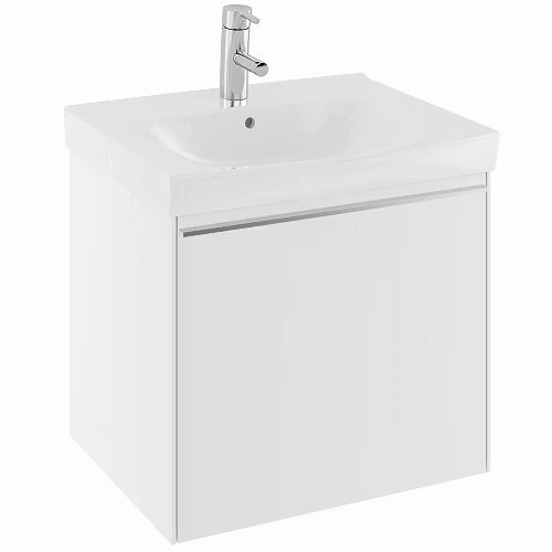 Komplett Stilrent möbelpaket med Ifö Spira tvättställ och underskåp. Underskåpet har en mjukstängande låda som öppnas med handtag och en fast hylla. Tvättstället har en bakre avställningsyta, upphöjd bakkant och vår rengöringsvänliga glasyr Ifö Clean. Skåpet är tillverkat i fukttålig MDF. Levereras färdigmonterat. Handtag, justerbara upphängningsbeslag och vattenlås ingår.