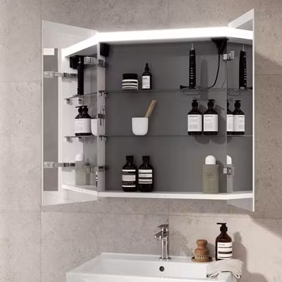 - Spegelskåpet kopplas till rummets strömbrytare. Ingen av/på-knapp