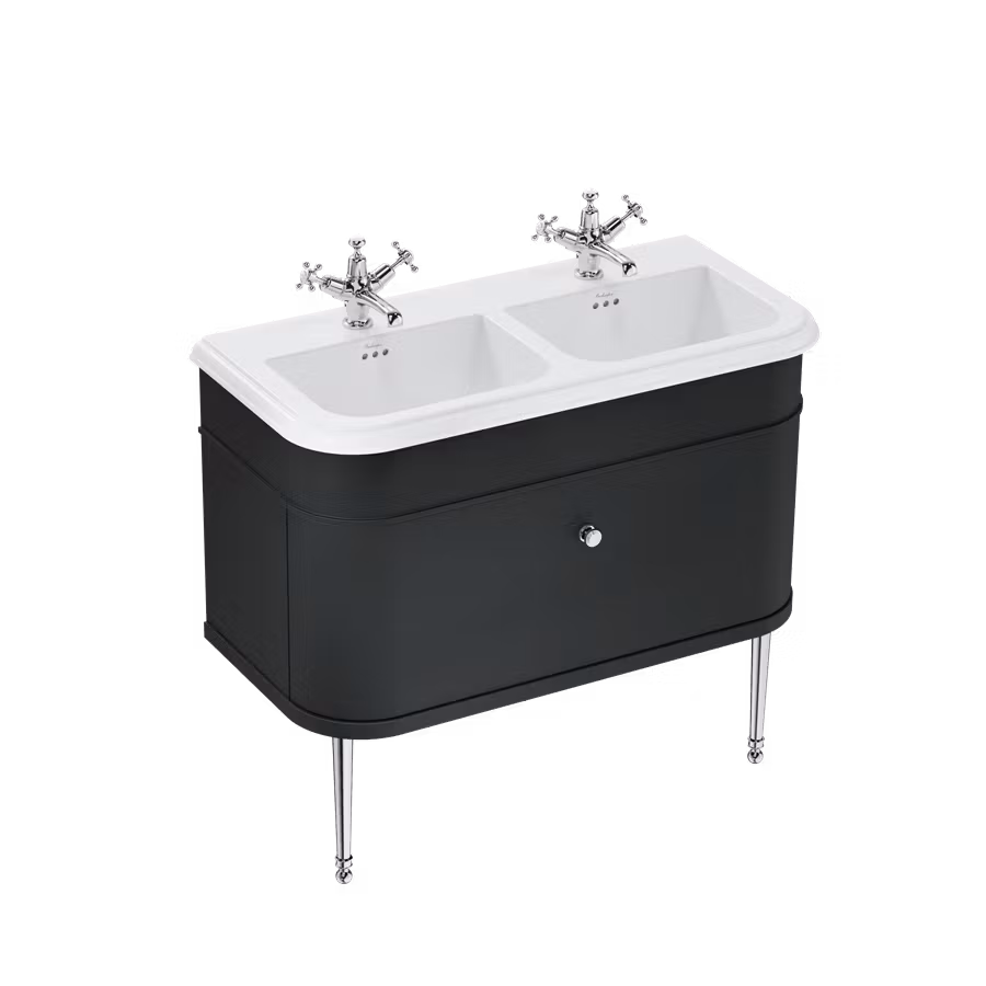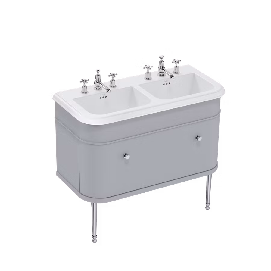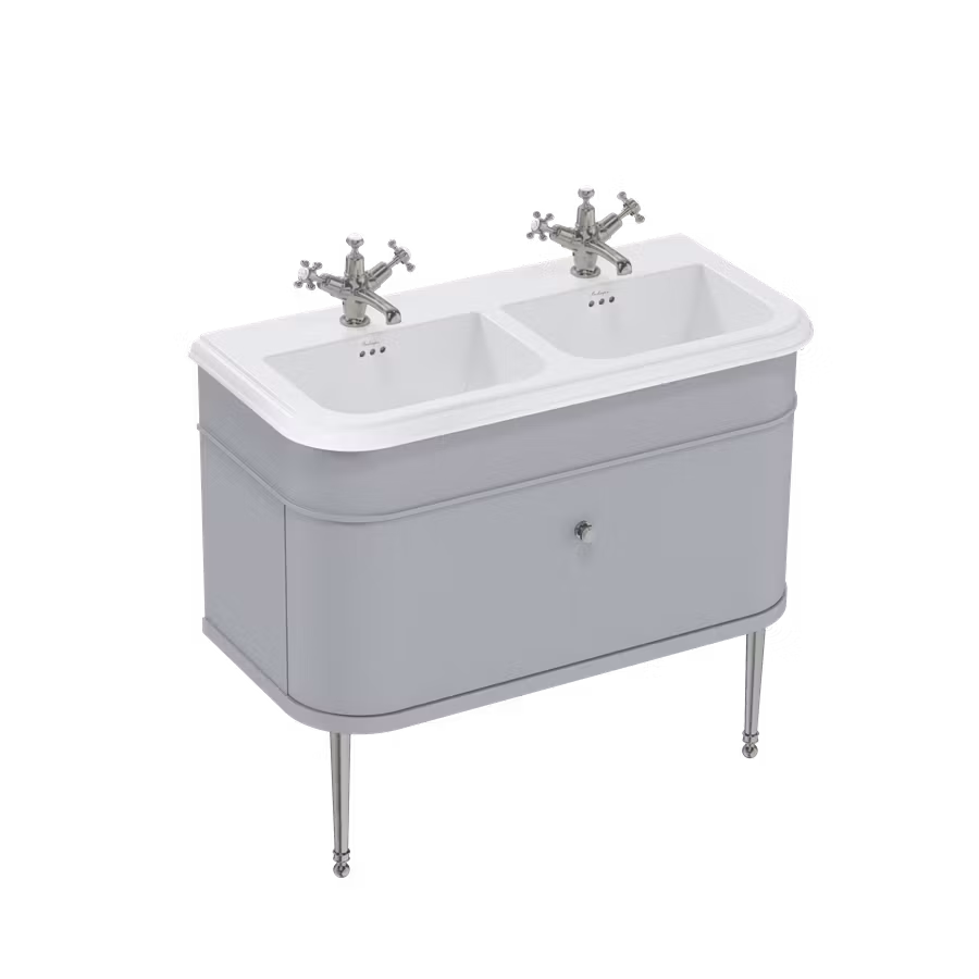 Möbeln levereras med ett matchande tvättställ i antingen porslin eller komposit. Porslinstvättstället finns med ett eller tre hål för blandare, medan komposittvättstället levereras utan hål men enkelt kan anpassas med hålsåg för metall eller kakel.