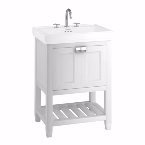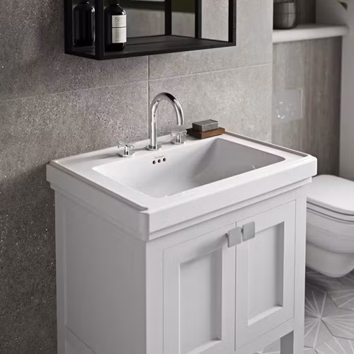 Tidlös badrumsmöbel ur Riviera-serien från Burlington, ca 65 × 47 cm, perfekt för mindre badrum eller gästtoaletter. Den klassiska designen kombineras med moderna material och smart funktionalitet för ett stilrent helhetsintryck.