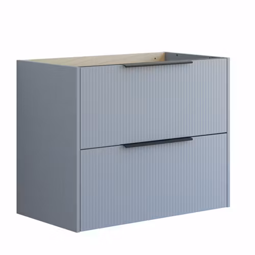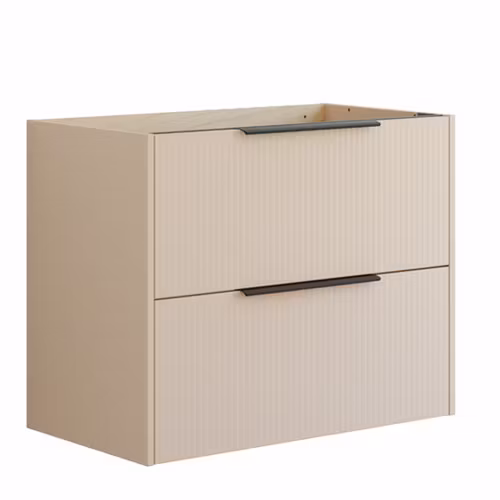 Det här underskåpet kombinerar funktionalitet och stil med sina 2 rymliga lådor och en elegant randig front. Skåpet finns i vitt, sand eller ljusblått och ger ditt badrum en modern och unik look. Lådorna erbjuder gott om förvaringsutrymme och handtagen är monterade och redo att användas.
