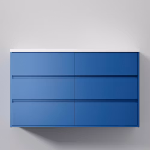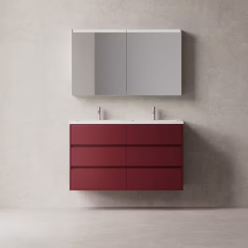 Dubbla tvättställ förenklar vardagen. Välj mellan Smooth, i solid surface, med en sammetslen, porfri yta och en samtida känsla eller Shape, i porslin. Eller kombinera bänkskiva och tvättställ, välj mellan bänkskiva i slitstark mineralkomposit eller solid surface i ultramatta Soft White. Matcha med ovanpåliggande Soak eller det underlimmade tvättstället Wave. Tillval som Plus Divider skapar ordning i lådorna, Plus Power ger ett dubbelt eluttag i den nedre, och Plus Light tillför ett mjukt ljus i och under kommoden. Alla lådor har soft-close och antiglidmattor som håller allt på plats.