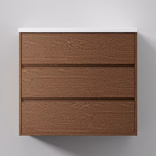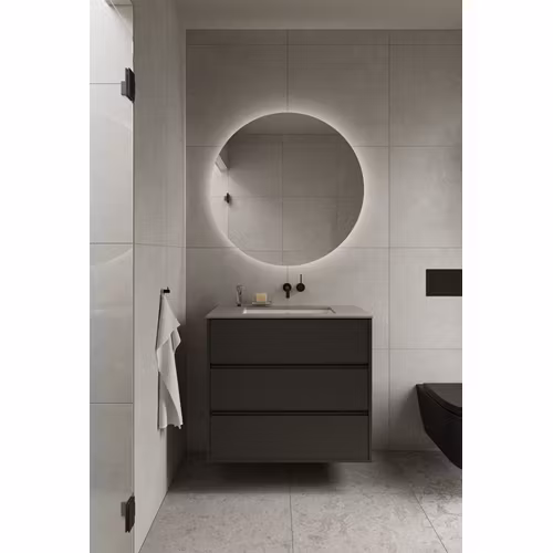 Terra Grip 80 är mer än bara ett tvättställsskåp. Med sin släta front och diskreta grepplist erbjuder den ett sofistikerat och modernt utseende. Det tydliga fanérmönstret ger en varm och naturlig karaktär som förändras med ljusets skiftningar, vilket skapar en levande atmosfär i ditt badrum.