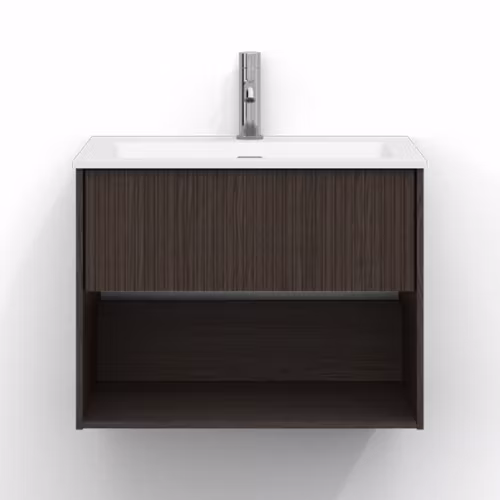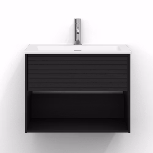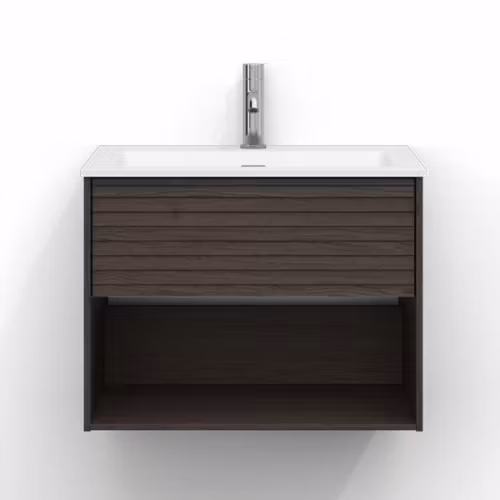 Skåpet är utrustat med EasyMount, Svedbergs patenterade upphängningssystem, som ger en snabb, enkel och säker montering på väggen. Den mjukstängande lådan har fullutdrag, vilket gör innehållet lättillgängligt, medan den öppna förvaringen ger både funktion och ett luftigt uttryck.