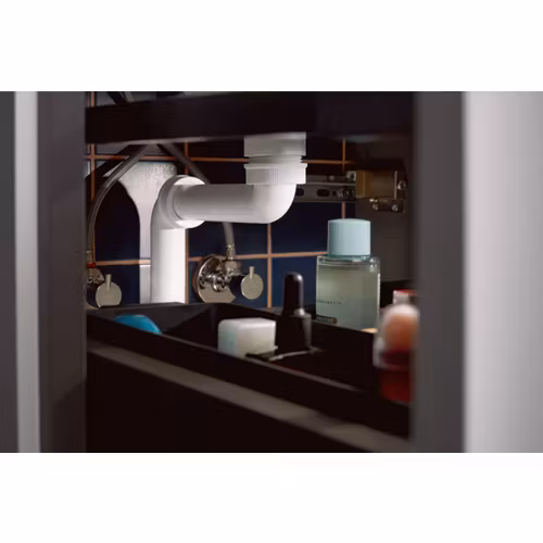 Platsbesparande vattenlås till tvättställ från Hansgrohe, modell 54235000. Den kompakta designen ger mer utrymme i tvättställsskåpet och passar anslutning G 1¼ till DN32. Justerbar höjd och enkel rengöring utan verktyg gör installation och underhåll smidigt.