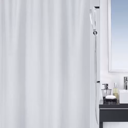 Duschdraperi i textil som är tillverkat i 100 % polyester. Tyngdband är insytt i draperiets nederkant som gör att draperiet håller sig på plats när man duschar. Tvättas i maskin 30 grader. Tvätta ditt draperi ofta, skölj av efter varje användning och låt hänga luftigt för att torka.