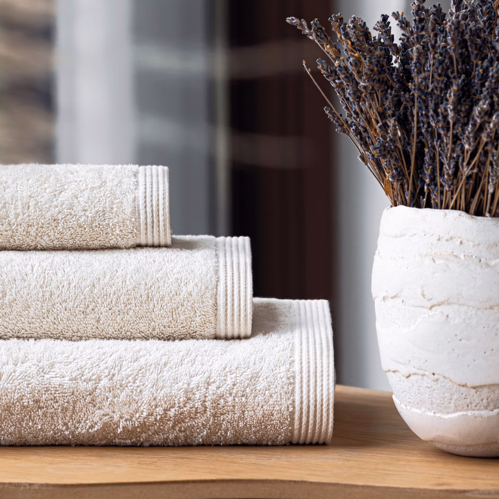 580 gr/m2 med hängband ton i ton med handduken.