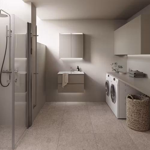 Två världar av sten, formade av is, vind och väntan. Sprungna ur samma nordiska natur men med olika temperament – den ena rå och uttrycksfull, den andra stilla och harmonisk. Alvaret och Stenvide är granitkeramiska tolkningar av nordisk kalksten. Här möts naturstenens utseende och känsla med granitkeramikens tålighet i uttryck skapade för badrum som ska hålla över tid.
