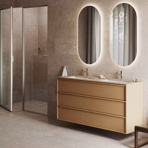 Två världar av sten, formade av is, vind och väntan. Sprungna ur samma nordiska natur men med olika temperament – den ena rå och uttrycksfull, den andra stilla och harmonisk. Alvaret och Stenvide är granitkeramiska tolkningar av nordisk kalksten. Här möts naturstenens utseende och känsla med granitkeramikens tålighet i uttryck skapade för badrum som ska hålla över tid.