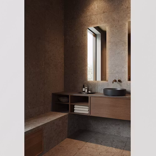 Två världar av sten, formade av is, vind och väntan. Sprungna ur samma nordiska natur men med olika temperament – den ena rå och uttrycksfull, den andra stilla och harmonisk. Alvaret och Stenvide är granitkeramiska tolkningar av nordisk kalksten. Här möts naturstenens utseende och känsla med granitkeramikens tålighet i uttryck skapade för badrum som ska hålla över tid.