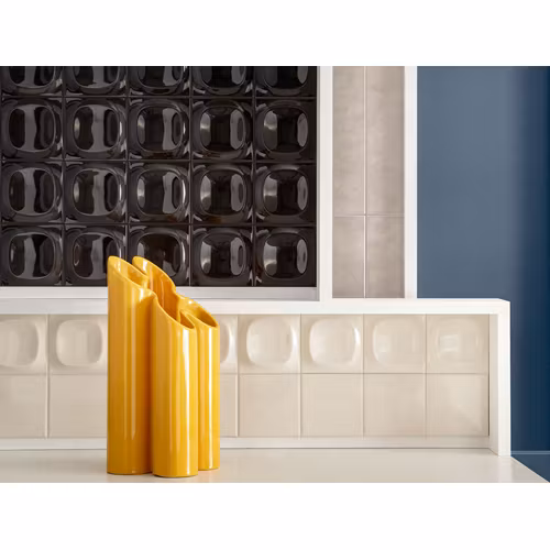 Med sina noggrant utformade former erbjuds plattorna i två storlekar: rektangulära 6,2×25 cm och kvadratiska 10×10 cm, båda med valmöjligheten mellan en slät eller tredimensionell yta. Den glansiga finishen ger varje platta en strålande lyster som förvandlar dina väggar till levande konstverk.