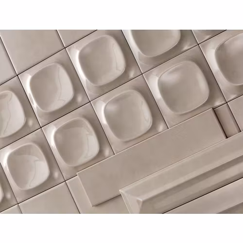 Med sina noggrant utformade former erbjuds plattorna i två storlekar: rektangulära 6,2×25 cm och kvadratiska 10×10 cm, båda med valmöjligheten mellan en slät eller tredimensionell yta. Den glansiga finishen ger varje platta en strålande lyster som förvandlar dina väggar till levande konstverk.