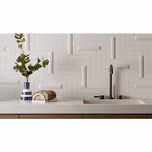 Up , serien väggkakel i storleken 5×25, cylinderformade stavar som skapar dekorativa väggar.