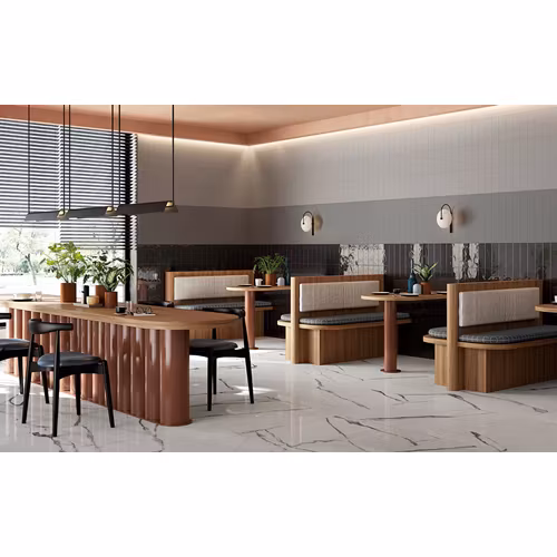 Harmoniska ytor som får liv, väggar som fångar ljuset och förvandlar det till unika och oefterhärmliga inredningsgeometrier. Detta är Vibes: 8 färger, i matt och blank finish, som kan blandas och matchas för att skapa rörelse och personlighet. Vibes definierar karaktären hos alla miljöer, smälter in med olika material, såsom marmor, cement och trä, och blir en värdefull och mångsidig allierad. En serie som täcker dina utrymmen med kalla och neutrala nyanser, skapar en underbar lugn atmosfär samtidigt som den erbjuder full designfrihet.