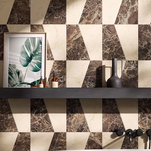 Royal är en granitkeramik med ett klassiskt och elegant marmorutseende som ger rummet en tidlös och exklusiv känsla. Majestic L Oro Versilia är granitkeramik med elegant marmorlook och varma guldfärgad ådringar – lyxigt och tidlöst.