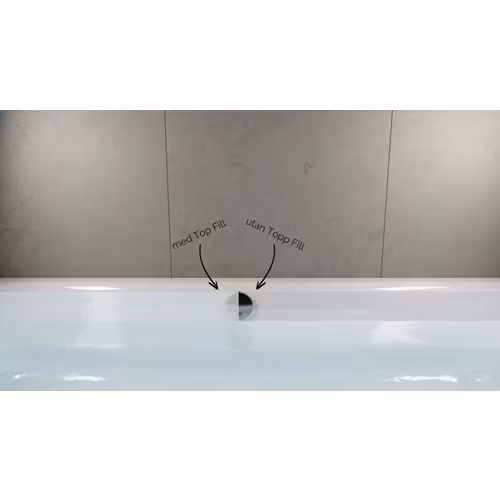 Top Fill har en inbyggd funktion som täpper till hela överfyllnadsskyddet och inget vatten rinner därmed ut genom bräddavloppet. Så om du vill maxa baddjupet i badkaret är Top Fill produkten för dig.