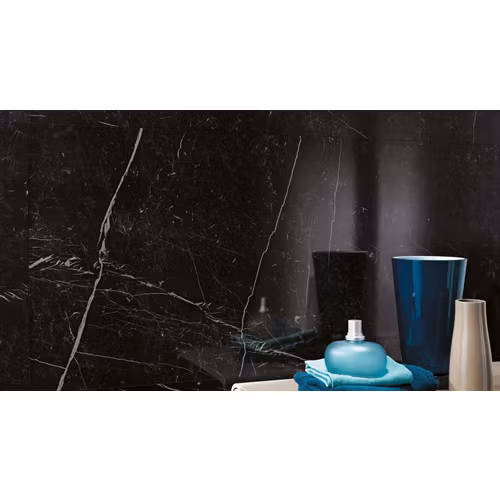 Granitkeramik Nero Marquina som överträffar alla förväntningar. Serien är inspirerad av marmor. Tillverkad i hållbar granitkeramik.