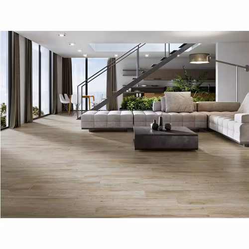 Granitkeramik Oakwood med trämönster. Träets tidlösa charm kombinerat med fördelarna med granitkeramik skapar ett mjukt intryck i rummet. Snyggt i såväl kök, hall, vardagsrum som badrum.