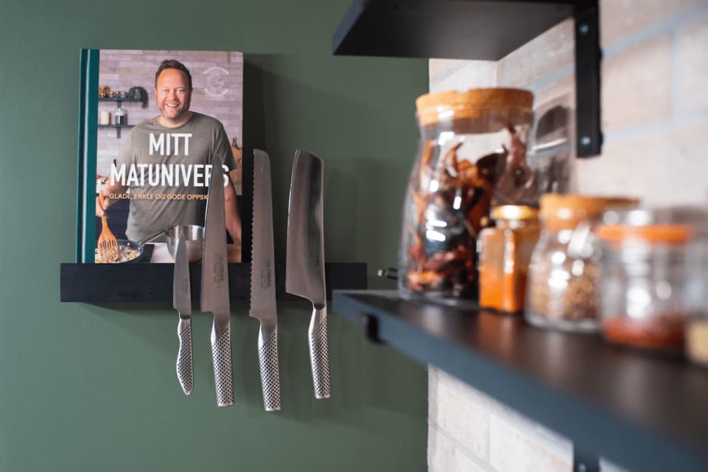 Men "Gladkokken" sysslar inte bara med att göra läckra rätter. Han är lika noga med att skapa en köksmiljö som inspirerar med en snygg kombination av modern design och retro.
