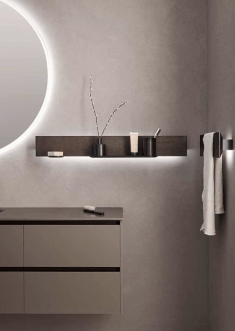 Det har också funnits många spännande möjligheter att belysa själva badrumsmöbeln. Från de praktiska lamporna som ger ljus i lådan till de mer dekorativa lamporna under möbeln eller mellan tvättställ och skrov. Här är vi mer angelägna om design än om praktisk betydelse.