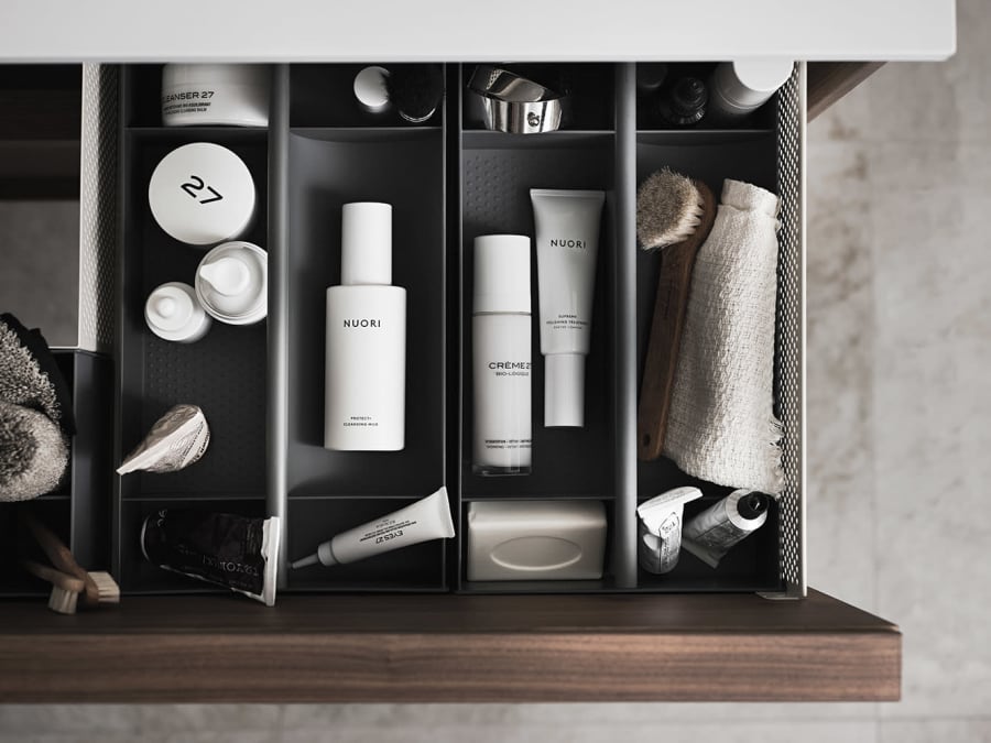 Det kan också vara bra att fundera på förvaringslösningar av mindre format, som hyllor eller lådor att fästa på väggen. Normalt används dessa i duschen, men de kan även vara praktiska på andra ställen i badrummet.