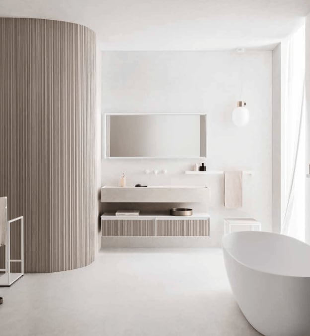 En annan möjlighet som inte alla är medvetna om är att Norfloor kan skräddarsy badrumsmöbler i samarbete med sin leverantör ARBI. Här produceras möblerna efter den ritning som ritats av säljaren och det finns otroligt mycket ytor, material och uttryck att välja på. Bredden på möbeln kan anpassas till precis vad du vill ha och det finns många möjliga specialanpassningar.